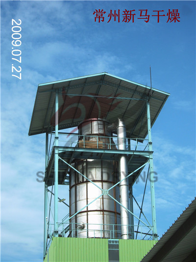 甜菊糖甙噴霧干燥機為開式循環、并流式、離心式霧化,微負壓操作。干燥介質空氣經過初、中效空氣過濾器預過濾后,由鼓風機吸取、再經亞高三效空氣過濾器過濾凈化達到10萬級,再由蒸汽加熱器和電補償器加熱成所需溫度的熱風,通過熱風分配器有規則地成螺旋狀進入干燥主塔。液體物料經過螺桿泵進入高速旋轉的離心噴頭,被分散成小霧滴,與熱風進行熱交換成為產品,在主塔底部出料,氣體介質由引風機引出,再經水膜除塵器過濾后排出,無塵飛揚。該機組收料系統采購冷凍除,濕冷風冷卻收料裝置既保證物料瞬間離開高溫區避免軟化而得到冷卻,又可避免物料在濕度較高的環境下吸濕等現象。